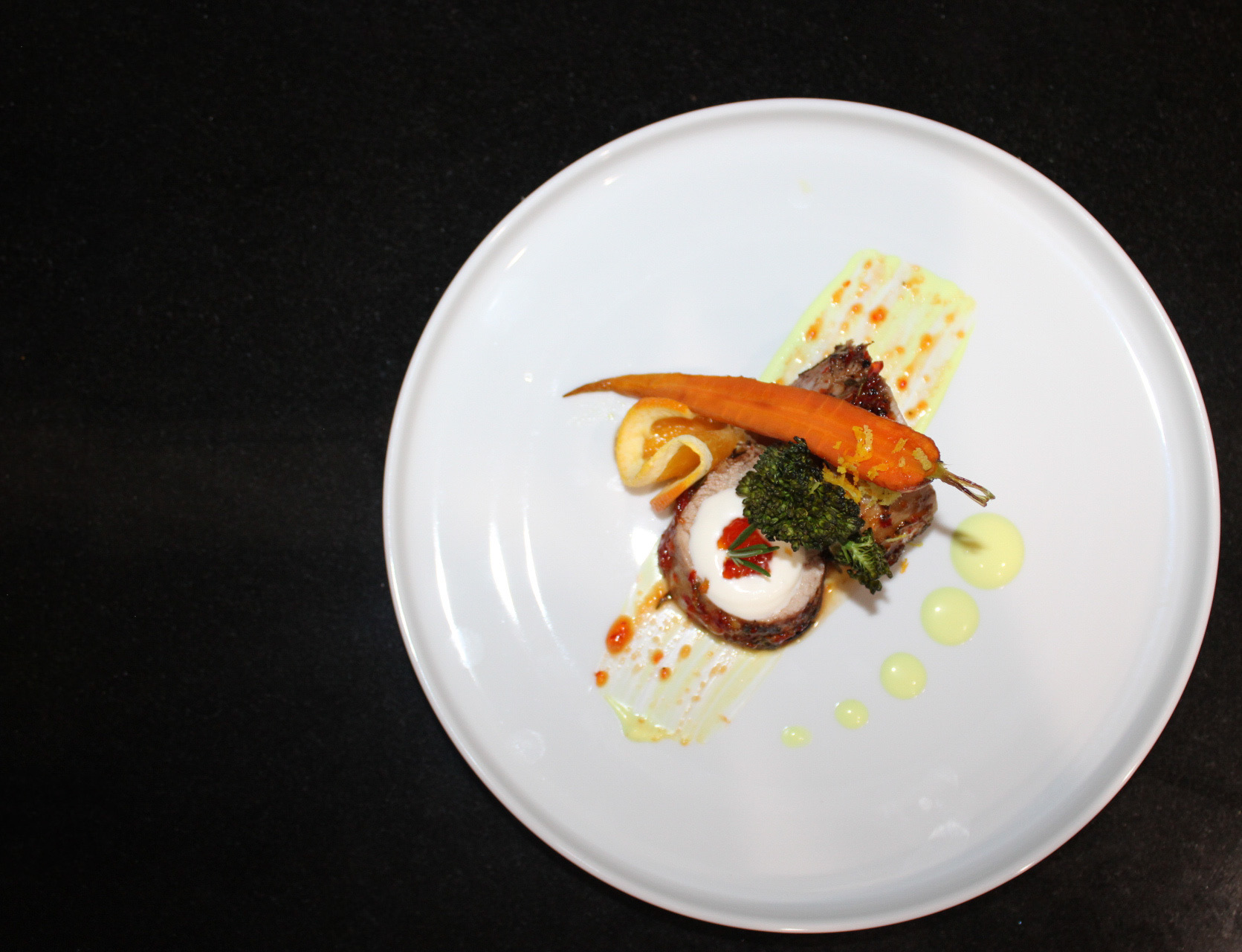 - Slice the Pork Loin and plate with some of the goat cheese mixtures and a bit of the remaining jelly.